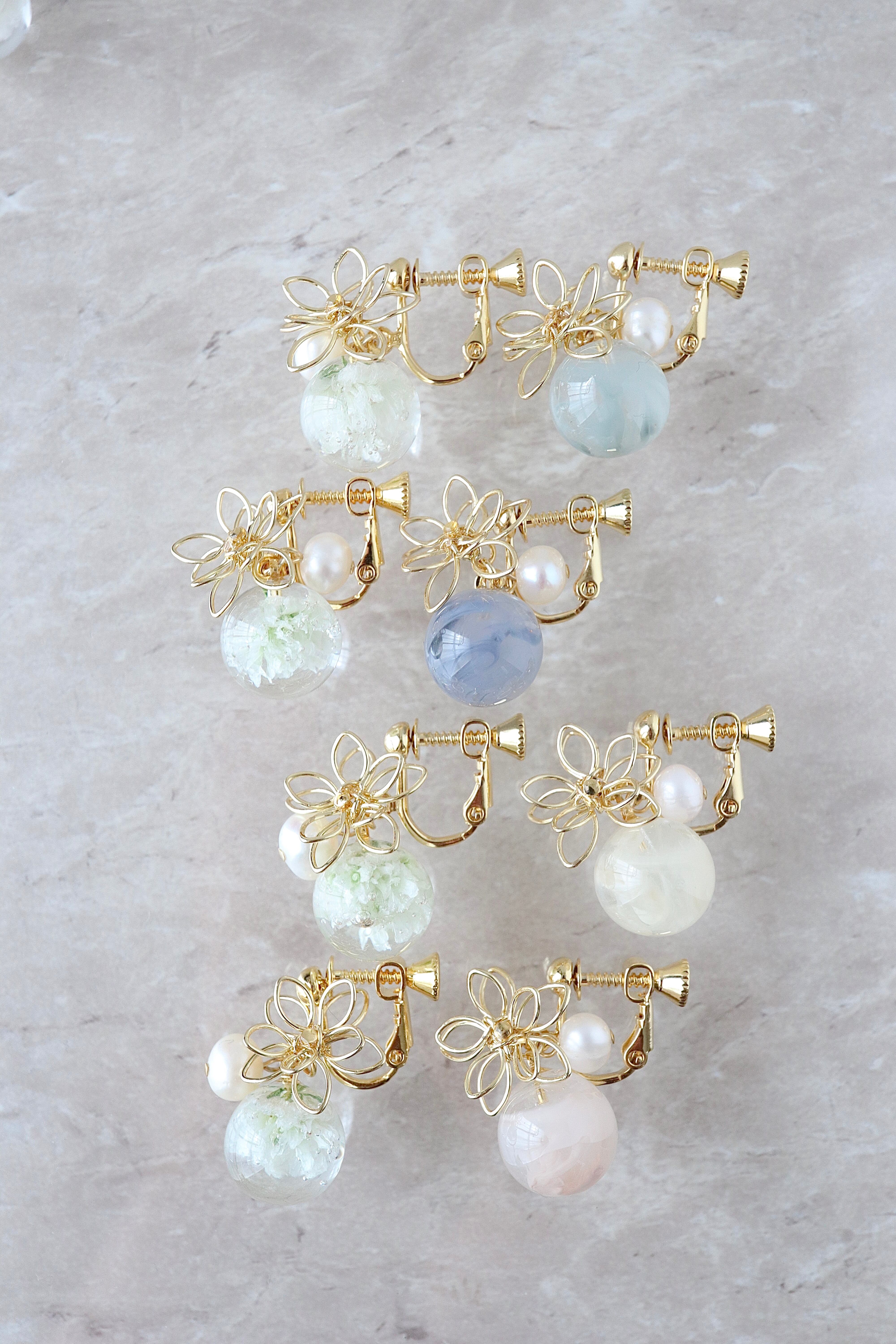 ボリューム くすみカラー きらきら キラキラ デート 大人女子 大人コーデ きれいめコーデ アシメ アシンメトリー 本物の花 ドライフラワー かすみ草 霞草 かすみそう 仕事 オフィス オフィスコーデ 小粒 スタッド 上品 大人可愛い 女性らしさ おでかけ お出かけ ご褒美 発表会 参観日 旅行 おしゃれ オシャレ お洒落 華やか 可愛い サージカルステンレス k16gp 華奢ピアス 華奢イヤリング 卒入学式 フォーマル 入学式