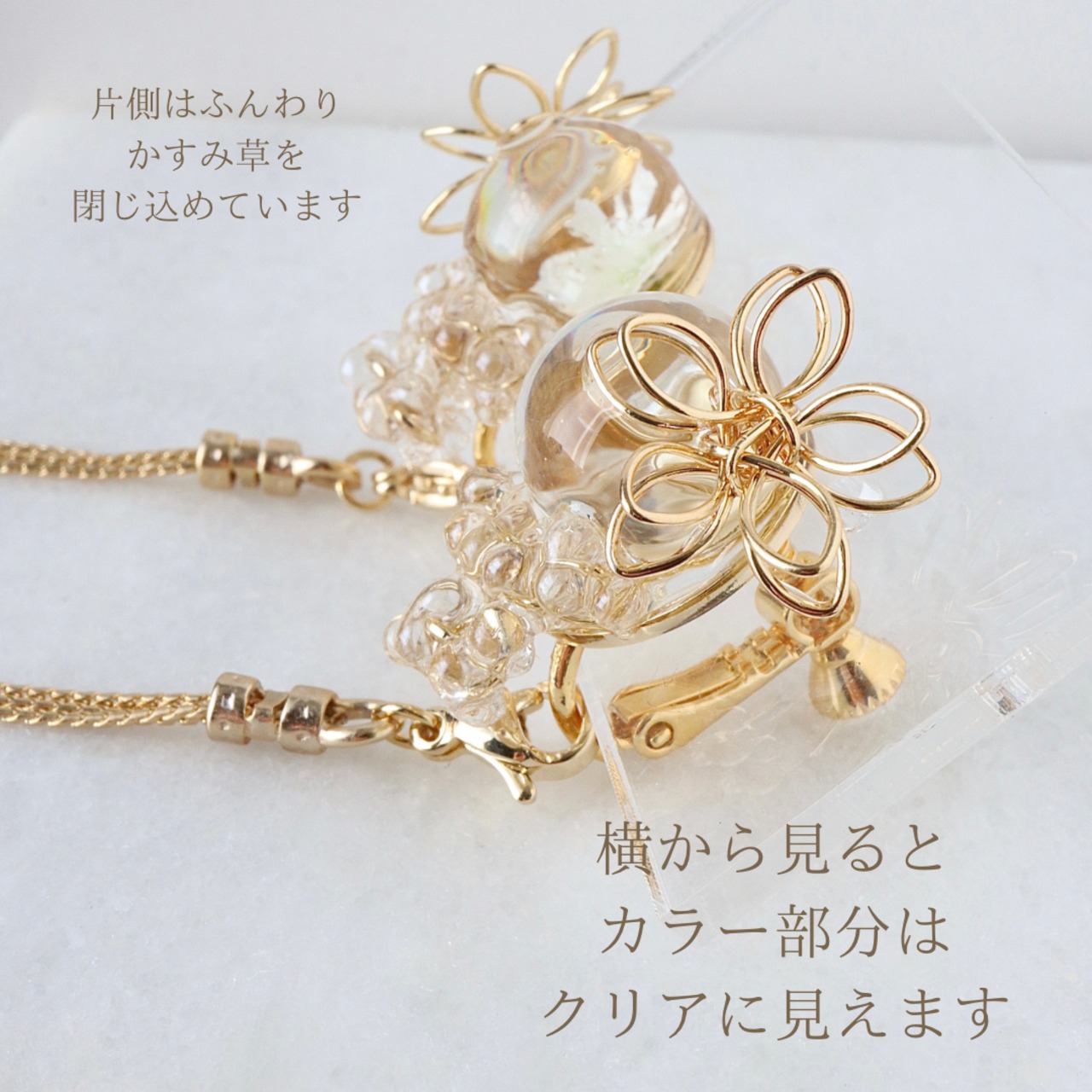 ※耳に当たる部分のチャームはメッキ素材を使用しておりますのでアレルギー対応ではございません
