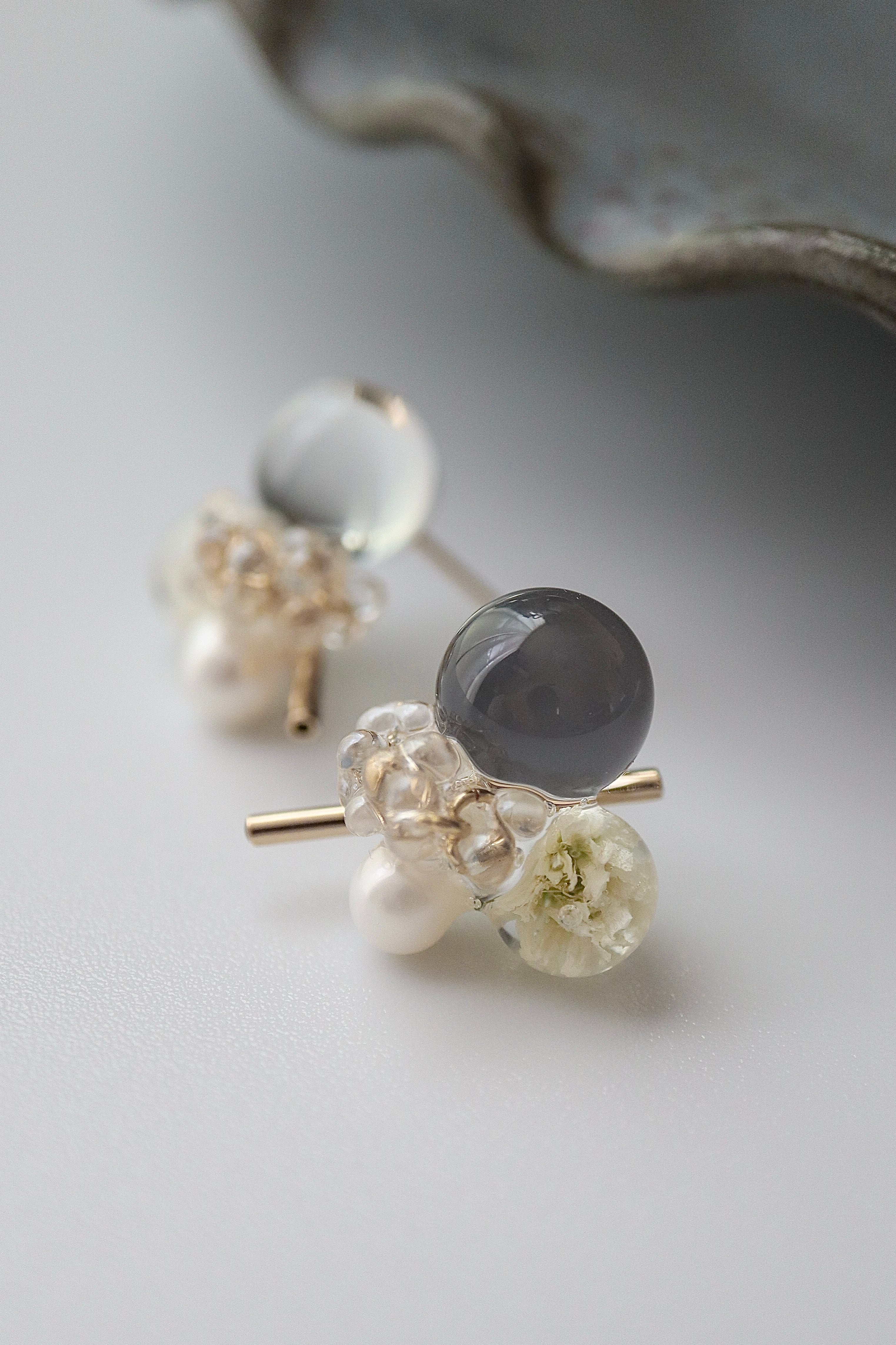 ふんわりしたかすみ草と淡水パールがそっと顔周りを華やかにしてくれます